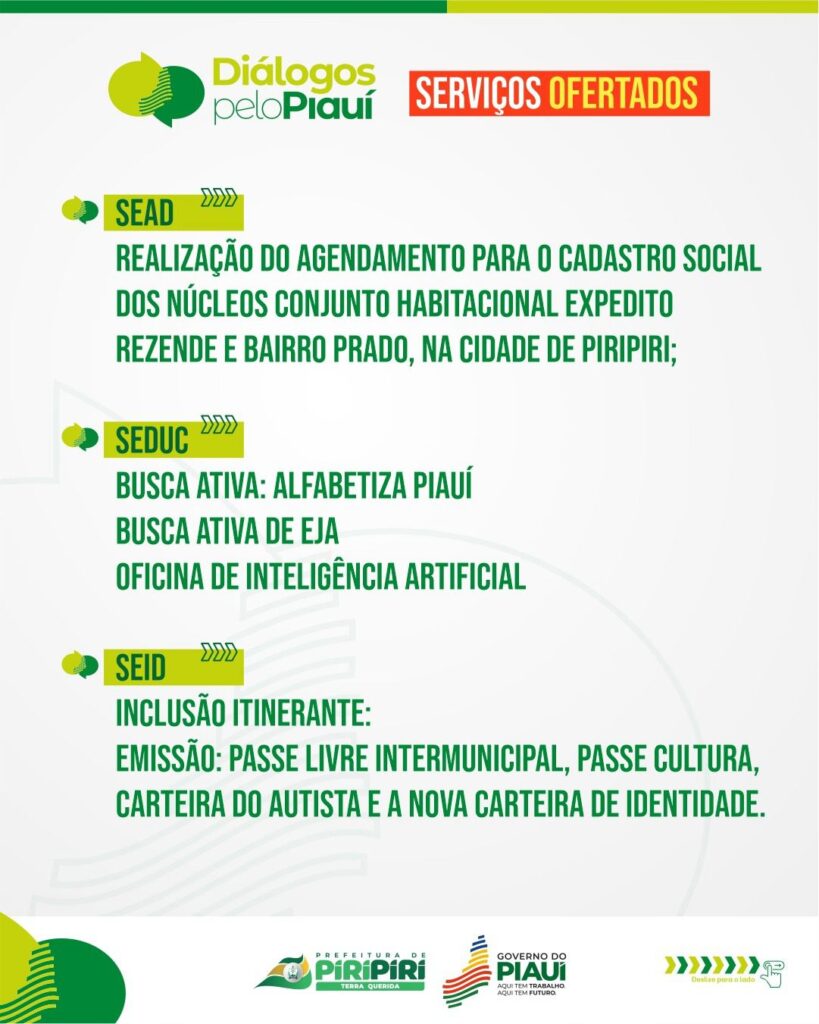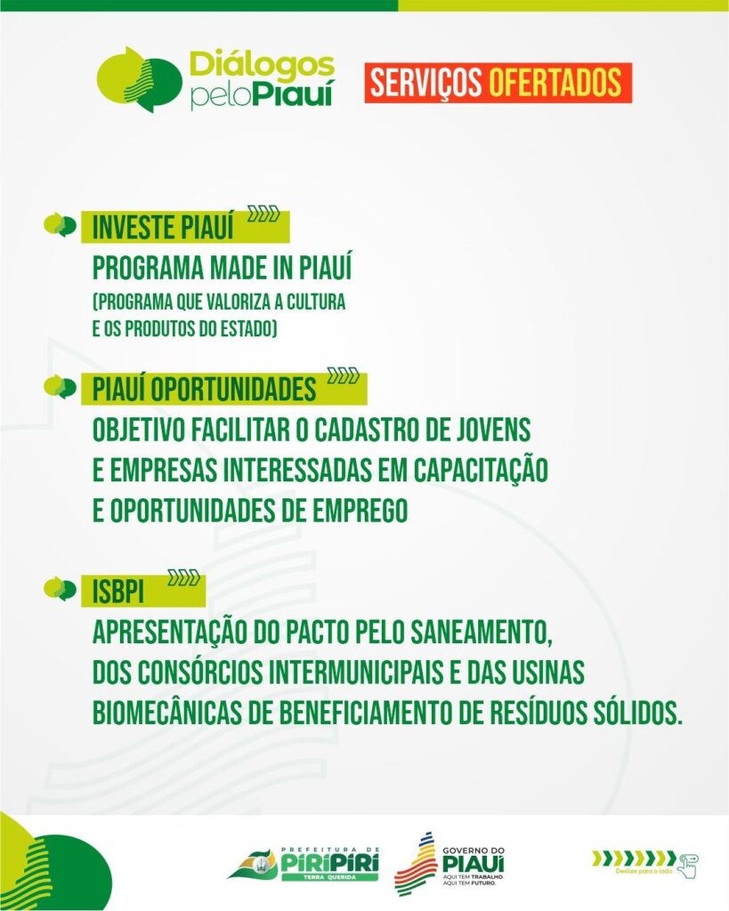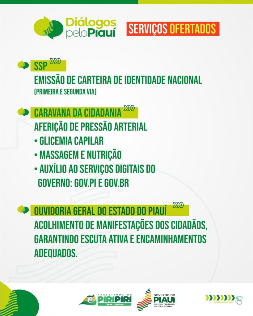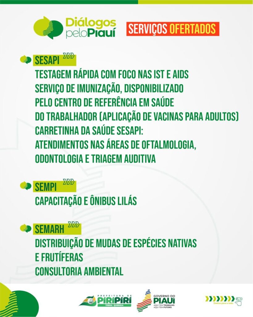 Diálogos pelo Piauí – Confira os serviços ofertados em Piripiri nesta sexta e sábado, dias 25 e 26 de abril
