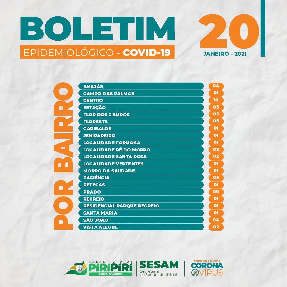 • Boletim epidemiológico Covid-19 Sesam Piripiri desta quarta-feira (20)