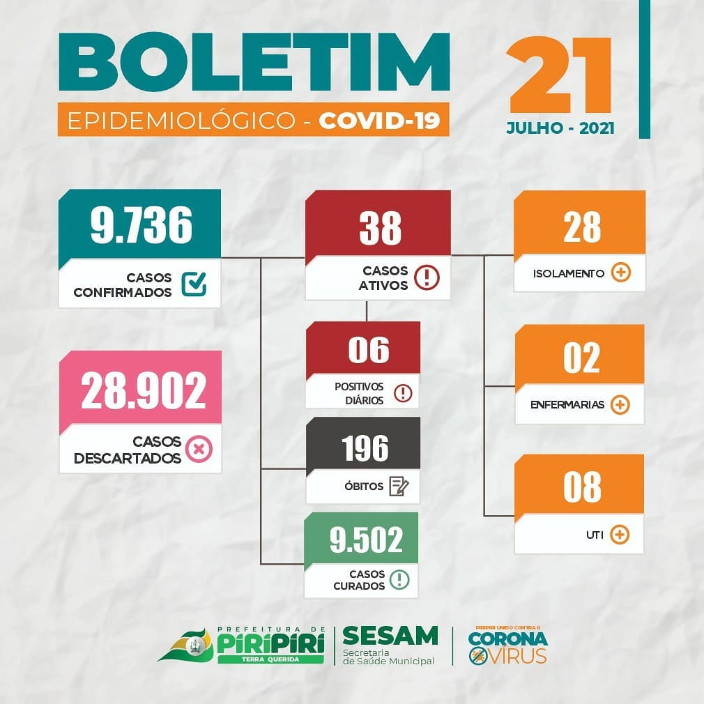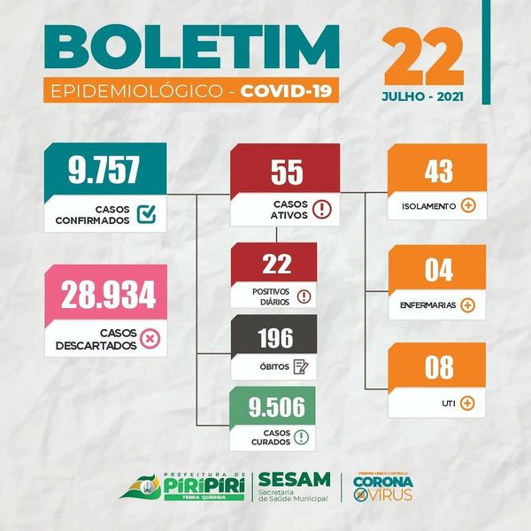 Boletins Covid-19 divulgados pela Sesam com dados dos últimos dias em Piripiri 23 de julho de 2021 DESTAQUES, SAÚDE