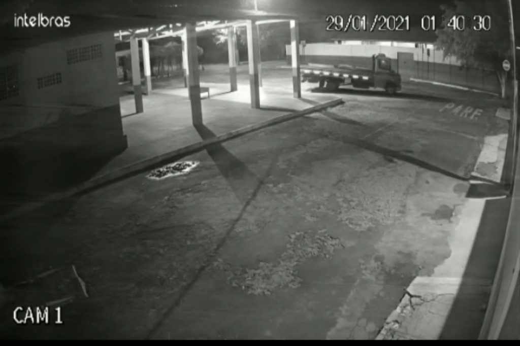 O veículo estava estacionado na rua Pedro Aragão em frente ao colégio Maria Luiza no centro da cidade,Imagem de uma câmera de segurança mostra o momento que os suspeitos vão saindo no caminhão.   Fm Imperial