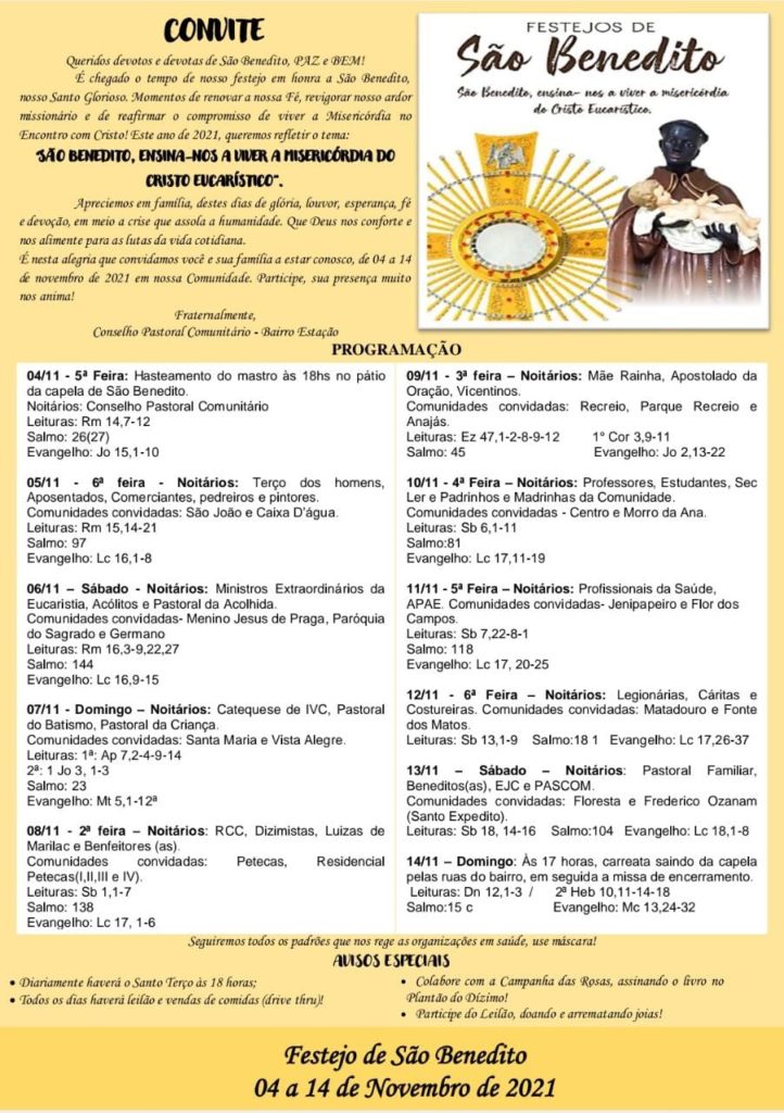 Confira a programação dos Festejos de São Benedito no bairro Estação em Piripiri 26 de outubro de 2021 DESTAQUES