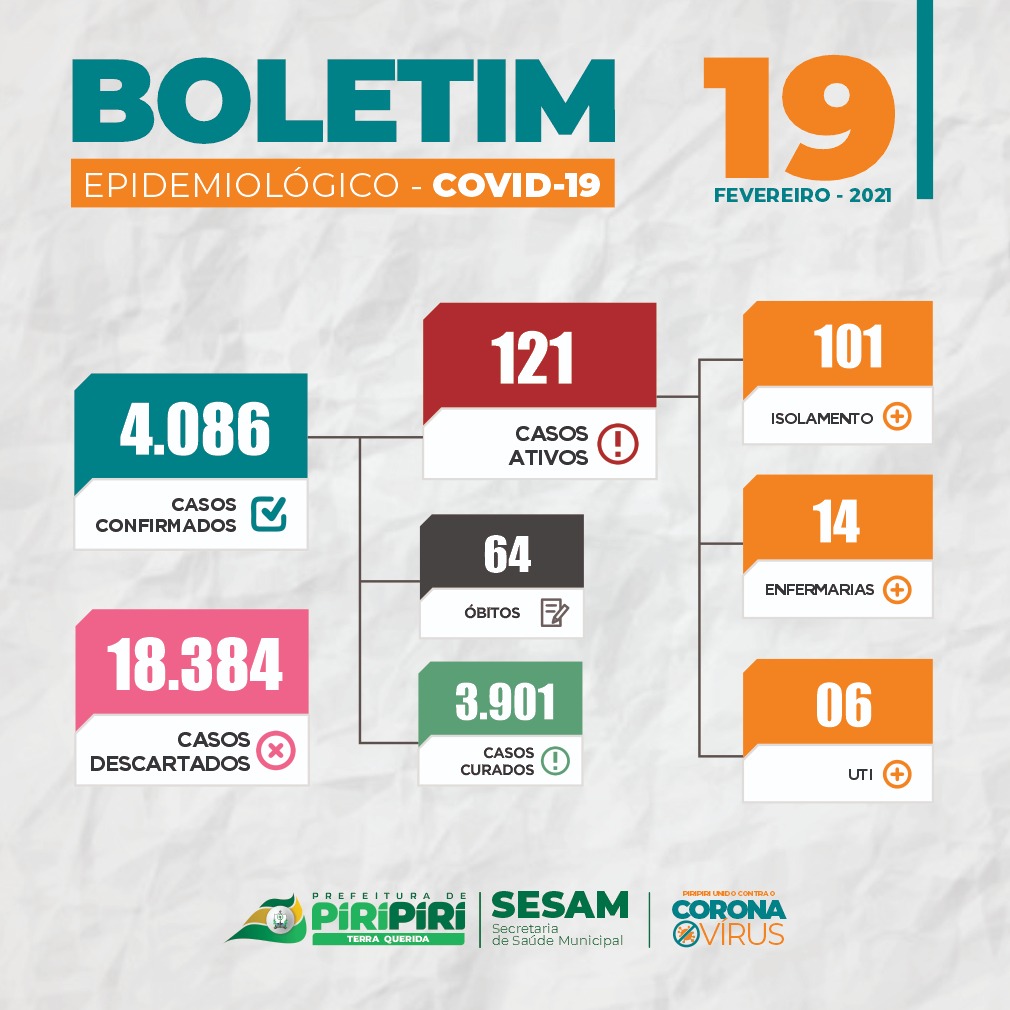 Piripiri registra o 64º óbito por Covid-19, Sesam intensificará ações de combate ao vírus neste final de semana 19 de fevereiro de 2021 DESTAQUES