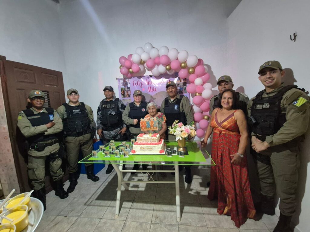Polícia Militar homenageia idosa durante aniversário de 98 anos em Parnaíba