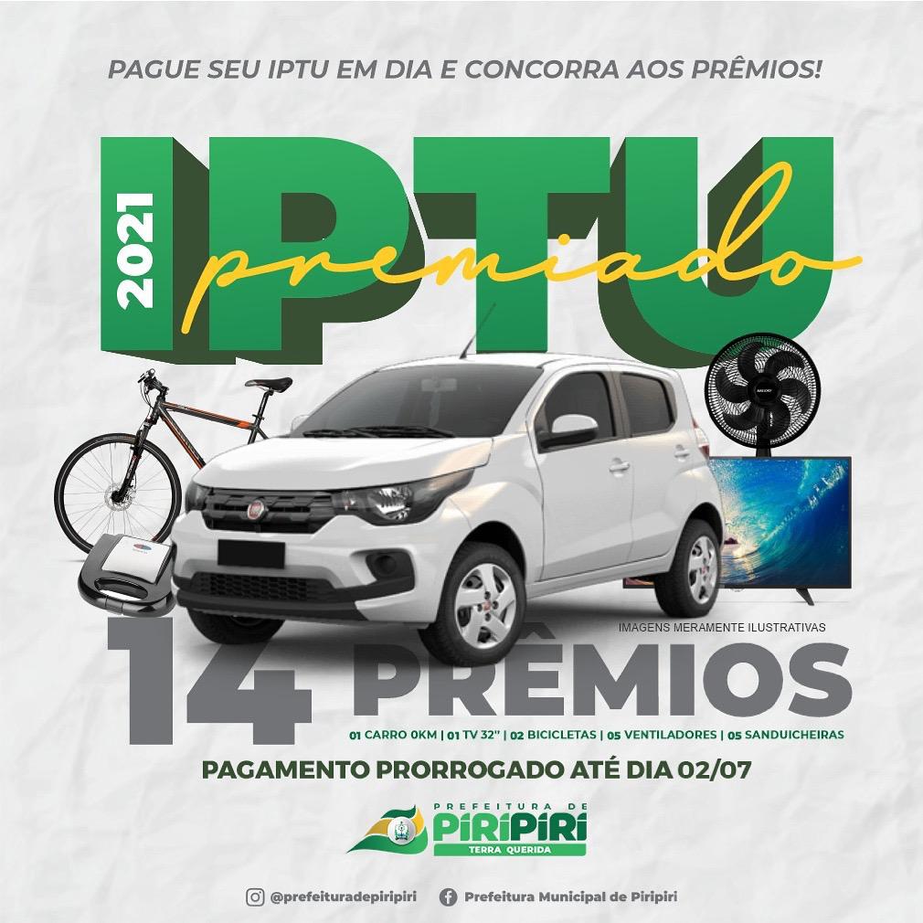 Prefeitura de Piripiri sorteará prêmios para contribuintes em dia com IPTU 2021