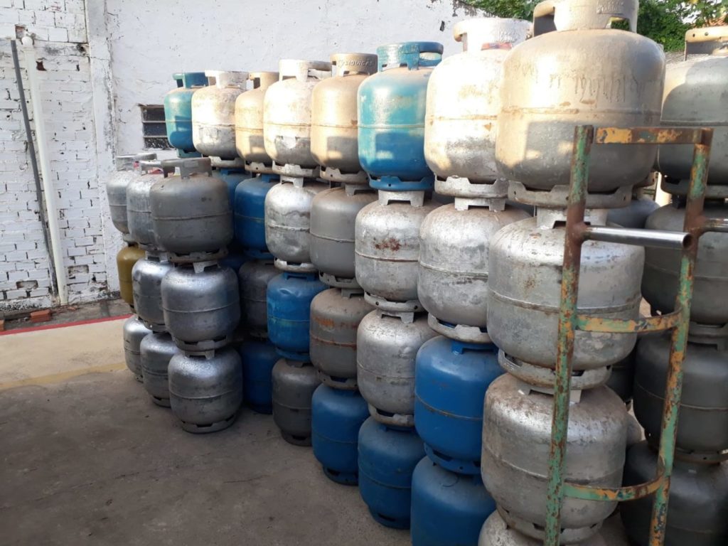 Foram apreendidos 32 botijões que estavam armazenados de forma irregular em um depósito. No mesmo estabelecimento, foram apreendidos 44 fardos de biscoito e 43 fardos de refrigerante fora do prazo de validade. Em outros estabelecimentos, a equipe de fiscalização apreendeu mais nove botijões, totalizando 41.