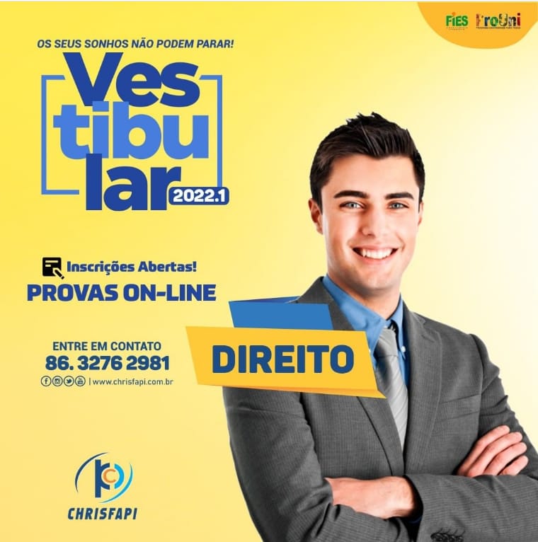 E você já fez sua inscrição para o vestibular 2022.1? Ainda não? Então, inscreva-se gratuitamente pelo site www.chrisfapi.com.br. São 13 cursos com qualidade diferenciada. Escolha logo o seu!