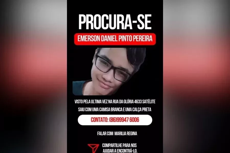 Os vizinhos não o viram saindo de casa, e ele teria saído por volta das 7 horas da manhã. Preocupada com o paradeiro do filho, a família registrou um boletim de ocorrência. Quem tiver qualquer informação sobre Emerson pode entrar em contato pelo telefone (86) 99947-6006. 180Graus