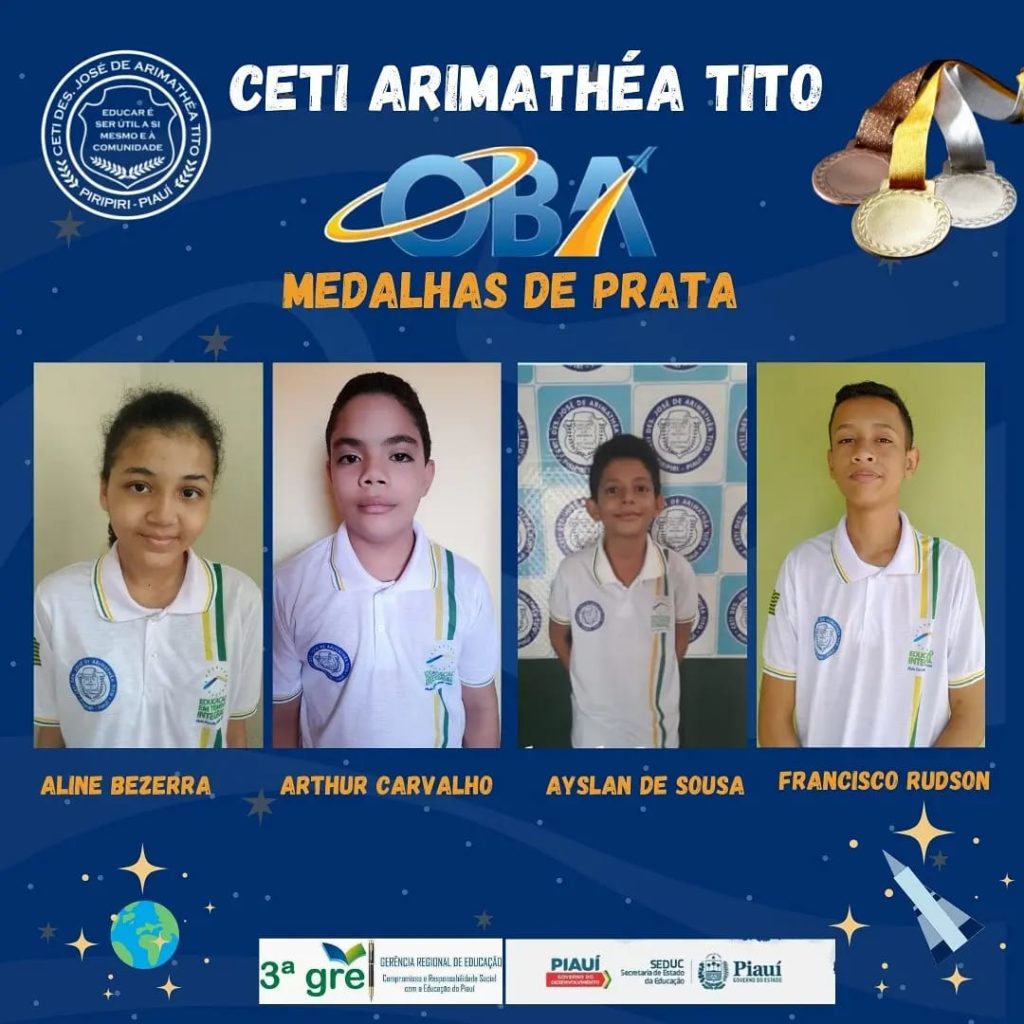 Alunos do CETI Arimathéa Tito são medalhistas na OBA; a instituição levou três ouros, onze pratas e três bronzes