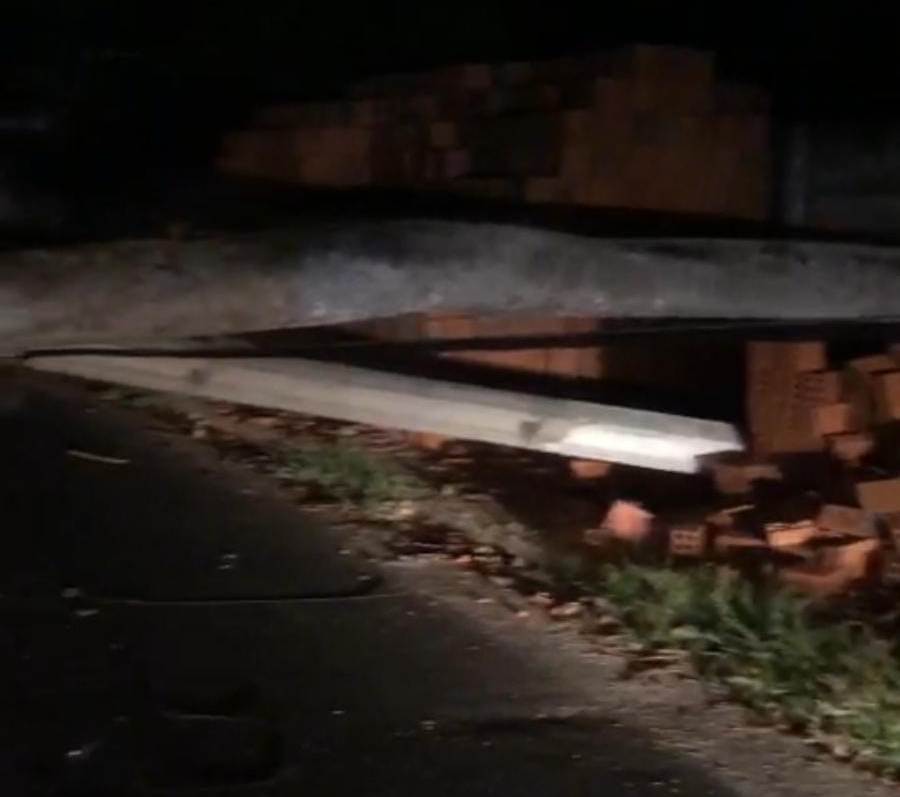 Apesar do grande susto, o homem saiu ileso e com a queda, a árvore levou junto um poste de energia que acabou atingindo o muro de uma residência.