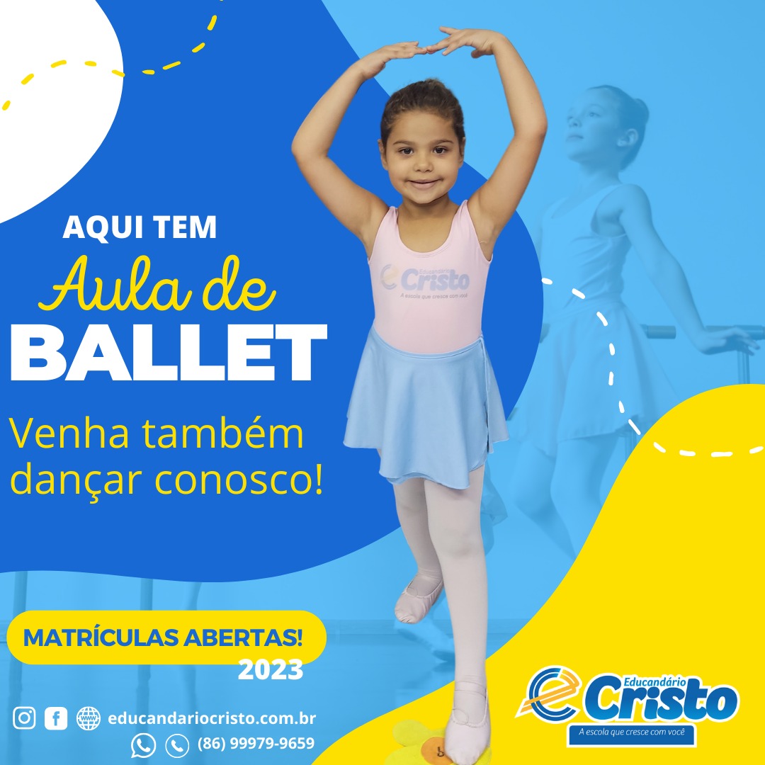 Além disso, o ballet auxilia na concentração, postura e ritmo, que são importantes para muitas outras atividades. E você? O que está esperando? Quer tudo isso para quem você mais ama? Estamos com matrículas abertas para 2023. Visite-nos hoje mesmo! Educandário Cristo – O caminho certo para o seu futuro!
