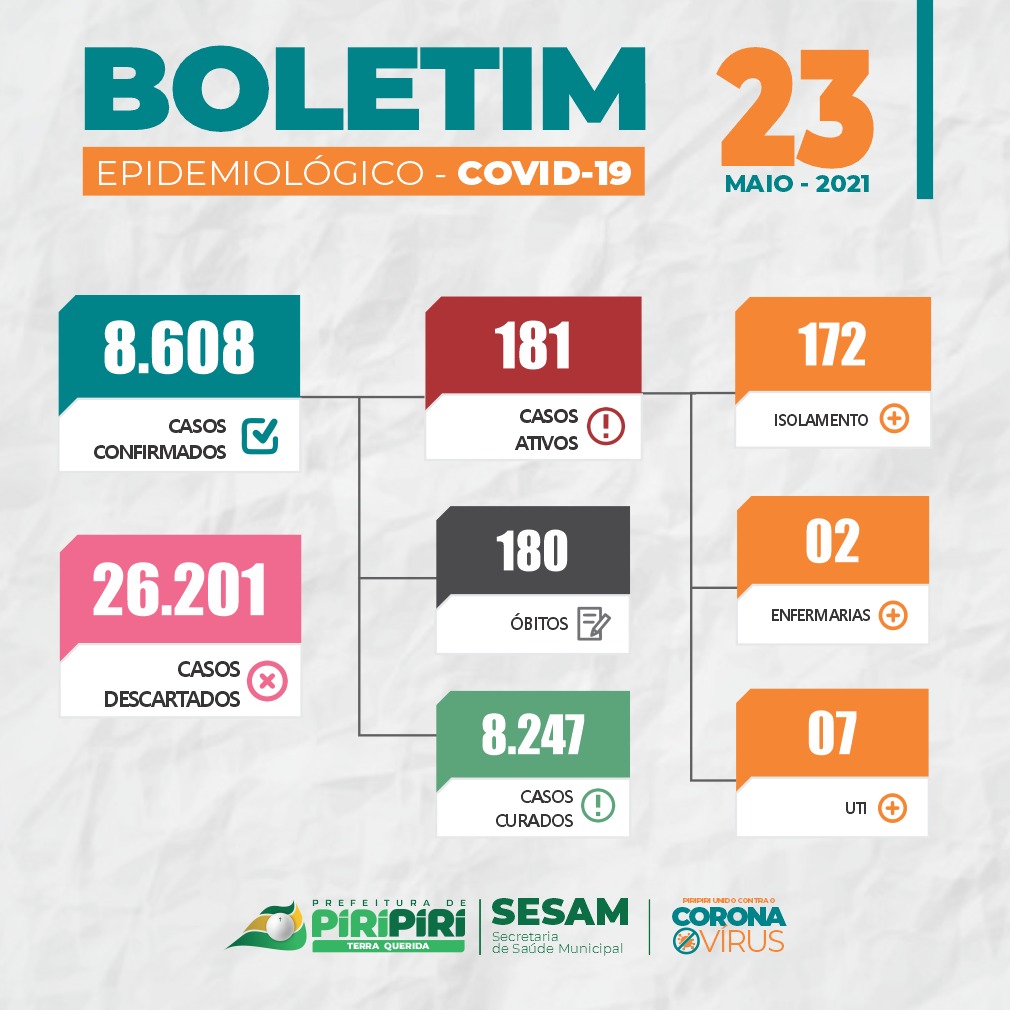Boletim Covid-19 da Sesam com números da doença em Piripiri até este final de semana