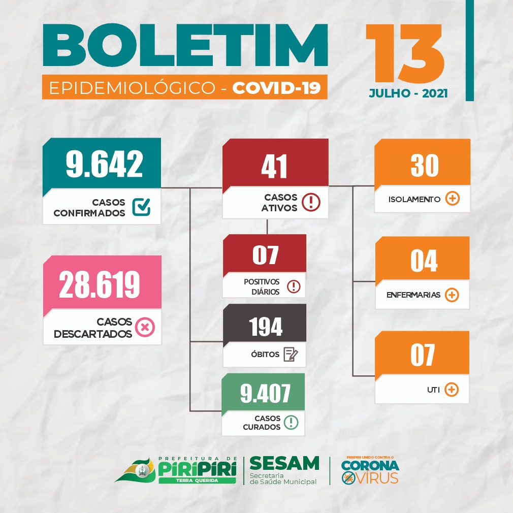 Abaixo os boletins epidemiológicos Covid-19 em Piripiri divulgados nos últimos dias pela Sesam.