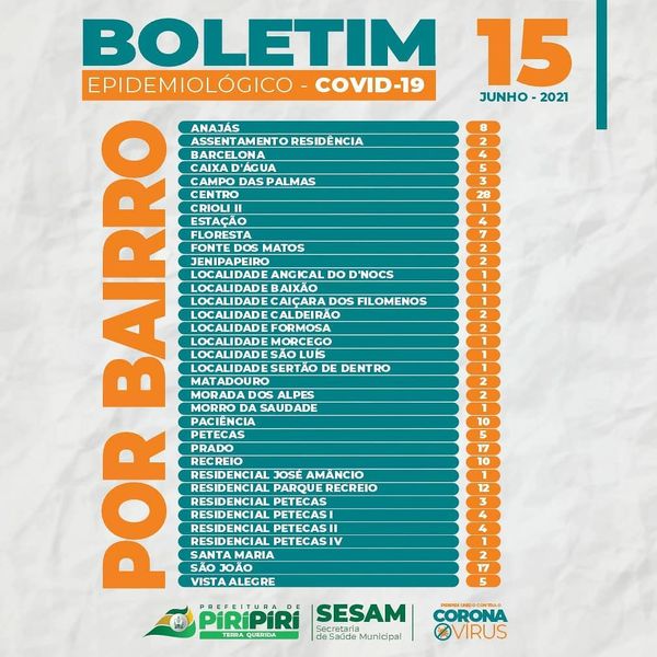 Boletins Covid-19 divulgados pela Sesam de Piripiri nos últimos dois dias