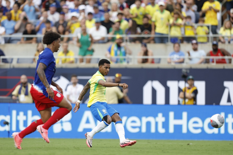 A Seleção Brasileira empatou com os Estados Unidos por 1 a 1 na noite desta quarta-feira (12), no Estádio Camping World, em Orlando, EUA. O jogo marcou o fim da etapa de amistosos antes da estreia da equipe na Copa América, dia 24, contra a Costa Rica. Rodrygo fez o gol da Seleção e Pulisic marcou para os adversários.