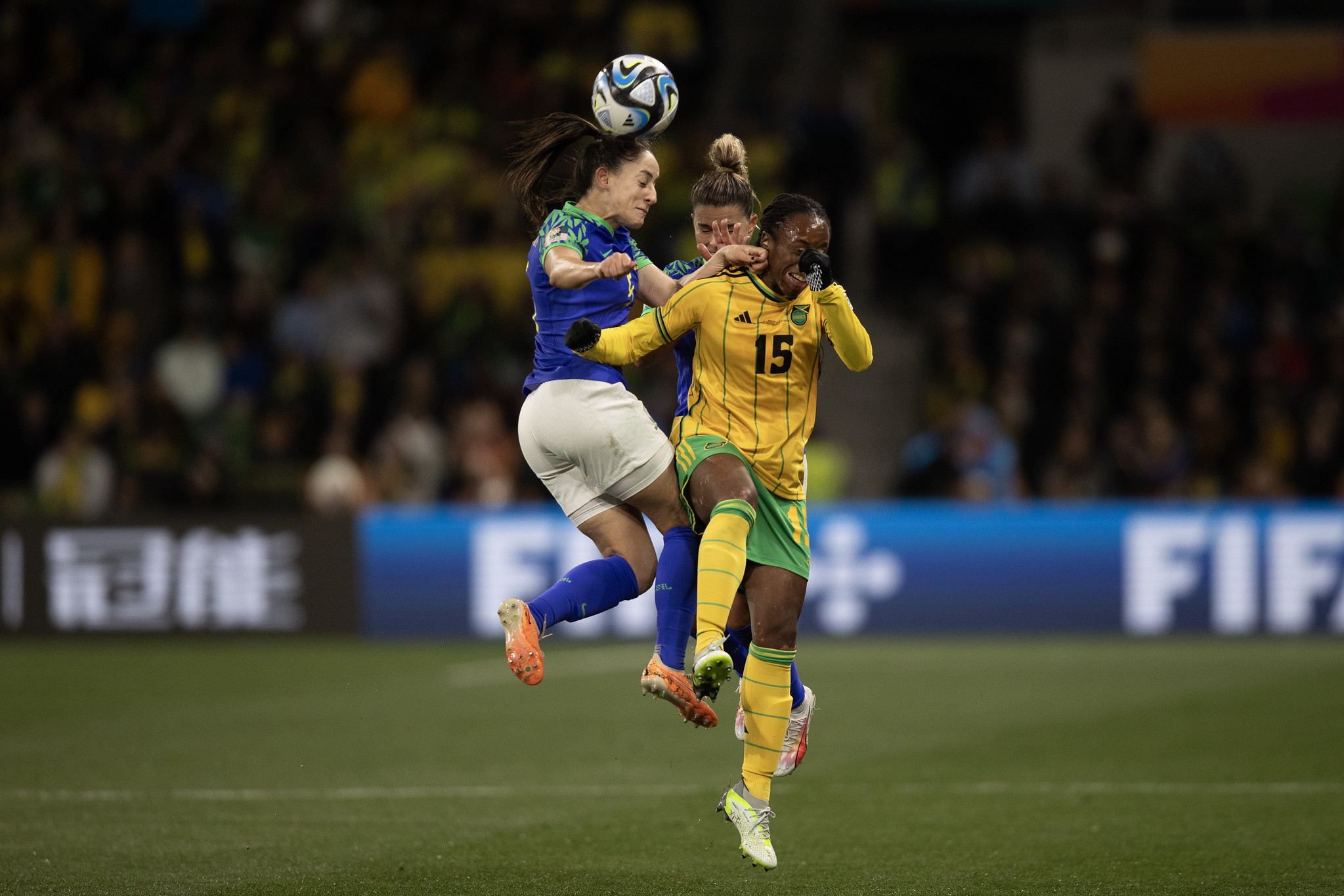 A pressão brasileira aumentou ainda mais no segundo tempo. Com Bia Zaneratto em campo, a seleção passou a colocar nove das 10 jogadoras de linha no campo de ataque e controlou o ritmo “alugando” o campo de ataque. Assim como fez no primeiro tempo, a seleção jamaicana se manteve travando a partida e tirando a sequência e o ritmo do confronto em Melbourne.