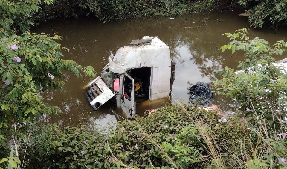Informações preliminares dão conta de que, após a colisão entre os veículos, o caminhão acabou descendo uma ribanceira e caindo em uma região de lago às margens da rodovia.