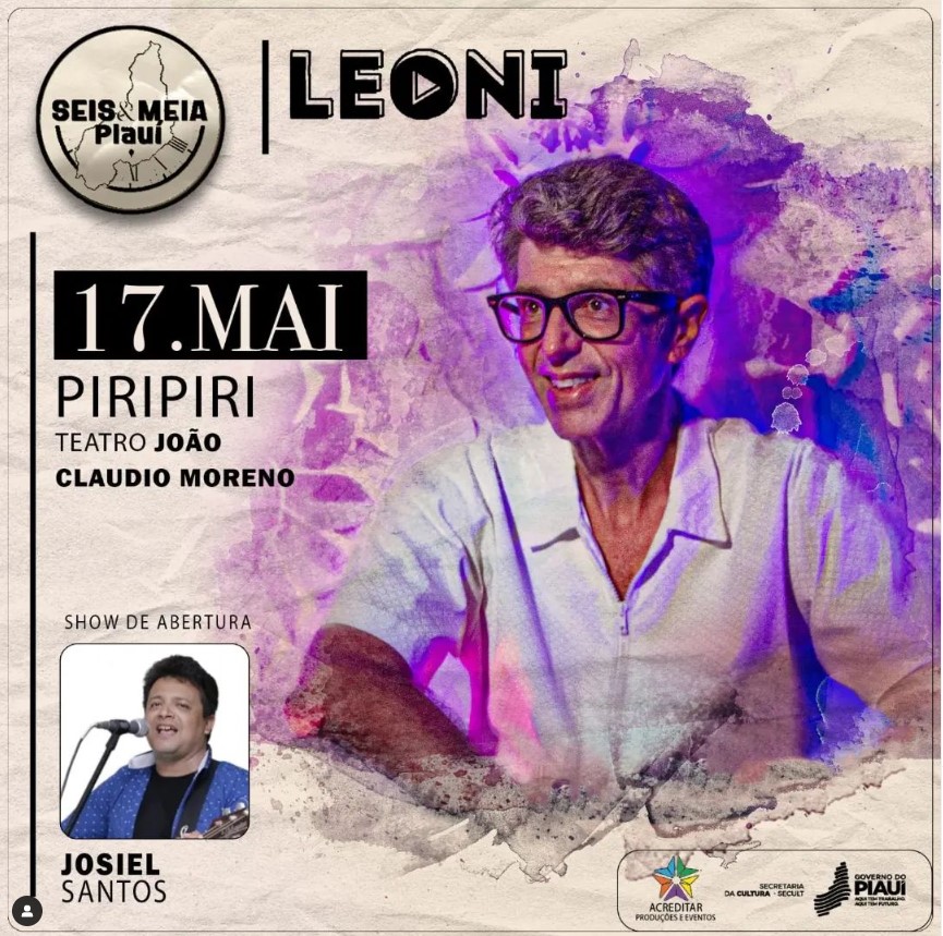 Já está confirmado quatro shows que prometem ser inesquecíveis, onde o cantor Leoni vem ao Piauí comandar o projeto Seis e Meia do mês de maio, desta vez, no eixo Norte.