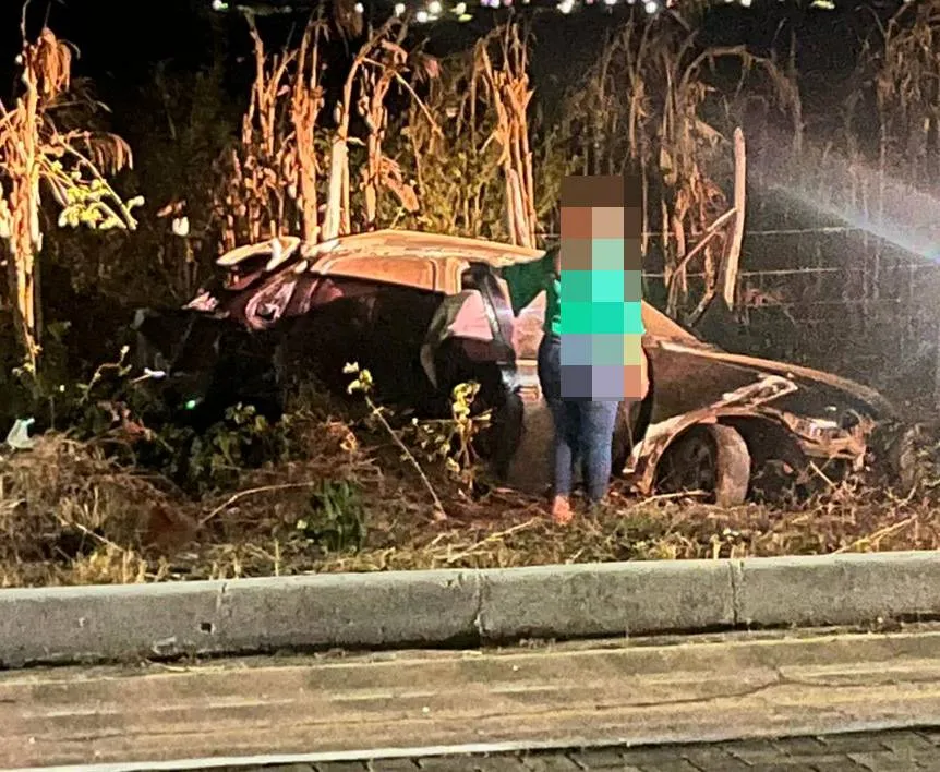Um Chevrolet Classic, de cor preta, tombou na noite deste sábado (1º) na PI-477, em um trecho localizado às margens da orla do Açude Joana, próximo à entrada de Pedro II, no Norte do Piauí. O acidente ocorreu por volta das 22h, após o motorista perder o controle do veículo e invadir a pista de caminhada.