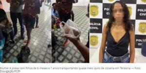 Mulher é presa com filhos de 6 meses e 7 anos transportando quase meio quilo de cocaína em Teresina