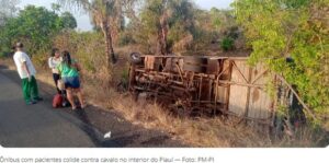 Ônibus com pacientes tomba após colisão com cavalo entre Barras e Cabeceiras do Piauí