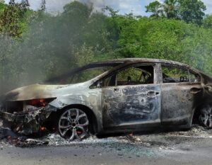Carro de empresário de Piripiri fica completamente destruído após pegar fogo na PI 214 em Luzilândia