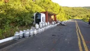 Caminhão carregado com botijões de gás tomba na PI entre Lagoa de São Francisco e Piripiri