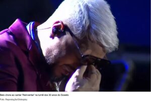 Após fim do casamento, Belo chora ao cantar própria música em turnê dos 30 anos do Soweto; assista