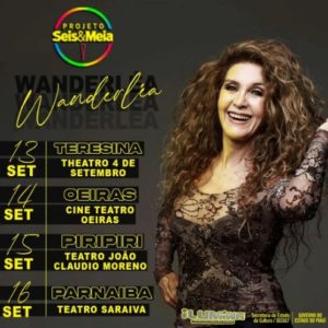 Em setembro Projeto Seis e Meia trará Wanderléia para show em Piripiri