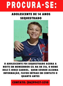 Adolescente de 13 anos, filho de empresário, é sequestrado em Monsenhor Gil