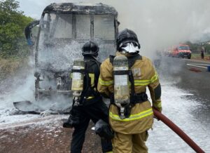 Incêndio em ônibus na BR-343 próximo a Altos é controlado pelo Corpo de Bombeiros; nenhum passageiro ficou ferido
