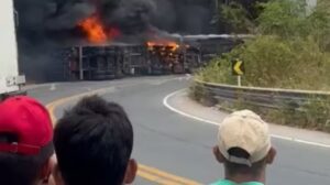 Caminhões colidem, pegam fogo e geram explosões na BR-222, em Tianguá no Ceará