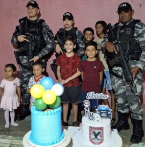 Polícia Militar realiza surpresa em aniversário de criança autista fã da corporação em Teresina