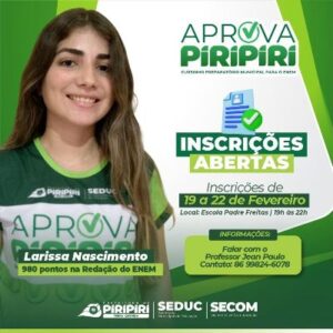 Prefeitura de Piripiri lança edital do Processo Seletivo para o cursinho Aprova Piripiri
