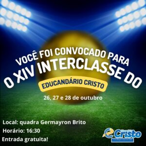 Convidamos você para marcar presença AMANHÃ no XIV Interclasse do Educandário Cristo