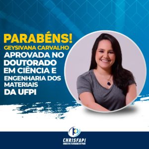 Faculdade Chrisfapi parabeniza a profª. Geysivana Carvalho pela aprovação em 1° LUGAR no Doutorado em Ciência e Engenharia dos Materiais na UFPI
