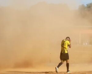 Redemoinho invade campo, paralisa partida amadora e surpreende atletas