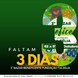 Contagem regressiva para o 3º Bazar beneficente da Fundação Tia Zélia, de 02 a 07 de outubro em Piripiri