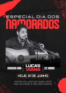 Hoje 12 de junho tem Lucas Viana ”Ao vivo” no Especial Dia dos Namorados no Sossega Bar de Piripiri