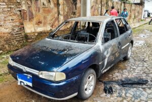 Carro é consumido pelo fogo no centro comercial de Piripiri; vídeo