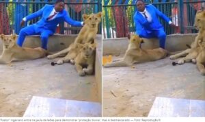 ´´Pastor´´ entra na jaula de leões para demonstrar ‘proteção divina’, mas é desmascarado