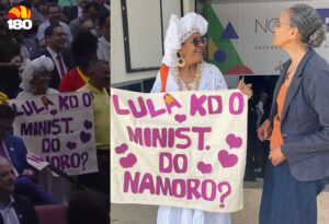 Mulher viraliza ao aparecer em evento do Lula no Piauí com faixa: “Cadê o Ministério do Namoro?”
