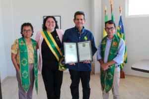Prefeita Jôve Oliveira faz entrega da Comenda Juncal para o empresário Roberto Fontenele