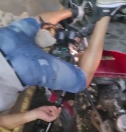 Motociclista se dá mal e colide em tira-entulho no Centro de Piripiri