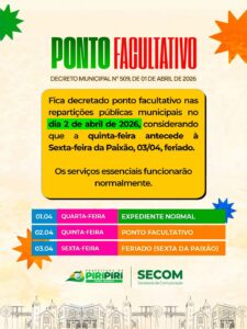 Prefeitura de Piripiri decreta ponto facultativo nesta quinta-feira (02)