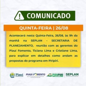 Reunião sobre o Piauí Fomento acontece nesta quinta em Piripiri