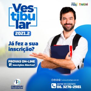 Últimos dias de inscrições para o vestibular 2021.2 da Faculdade CHRISFAPI! Inscrições gratuitas!