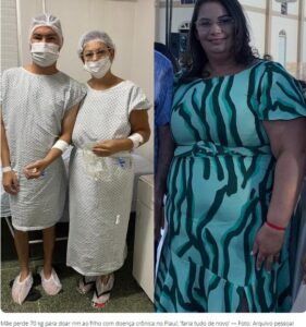 Mãe perde 70 kg para doar rim ao filho com doença crônica no Piauí: ‘faria tudo de novo’