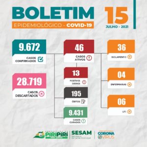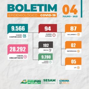 Confira o Boletim epidemiológico Covid-19 desta quarta-feira (07) divulgado pela Sesam de Piripiri