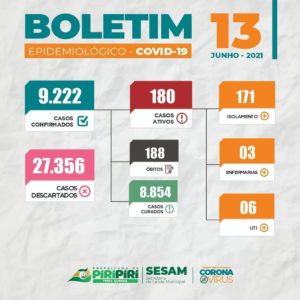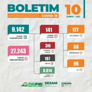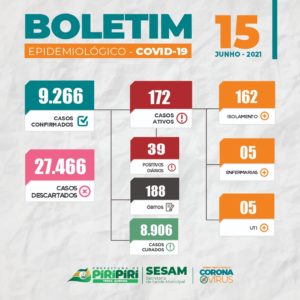 Confira os números da Covid-19 em Piripiri divulgados nos últimos boletins da Sesam