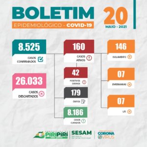 Boletim Covid-19 divulgado pela Sesam de Piripiri nesta quinta-feira (20)
